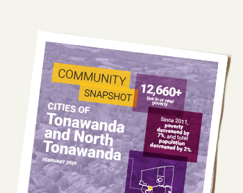 In the Twin Cities of Tonawanda and North Tonawanda, more than 12,600 residents live in or near poverty. Poverty is most concentrated near the Cities’ downtown. A number of services, such as housing, healthcare, and transportation, can address the needs of vulnerable groups like single parents and seniors. Workforce training programs for youth and adults can also remove barriers to help reduce poverty.